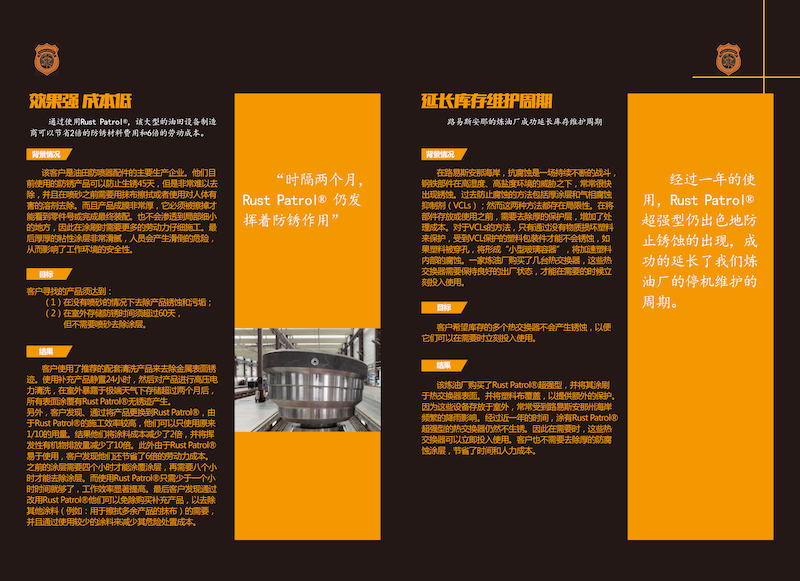 与同类产品相比,其涂层被动地停留在金属表面防护,而瑞铁宝的产品会主动寻找金属表面的钝化层,并与之其紧密结合,形成超级防护层。瑞铁宝可以提供同类产品4倍以上的防锈效果,而成本远远低于同类产品。